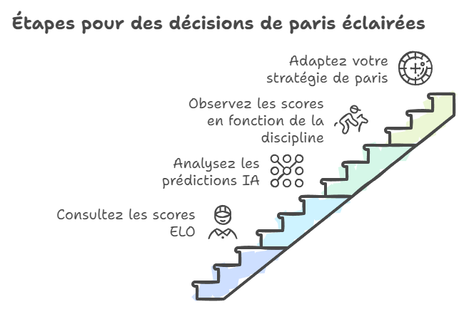 Analysez les prédictions IA : Assurez-vous que les prédictions IA sont en accord avec les scores ELO. Cette convergence est souvent le signe d’un pari gagnant.