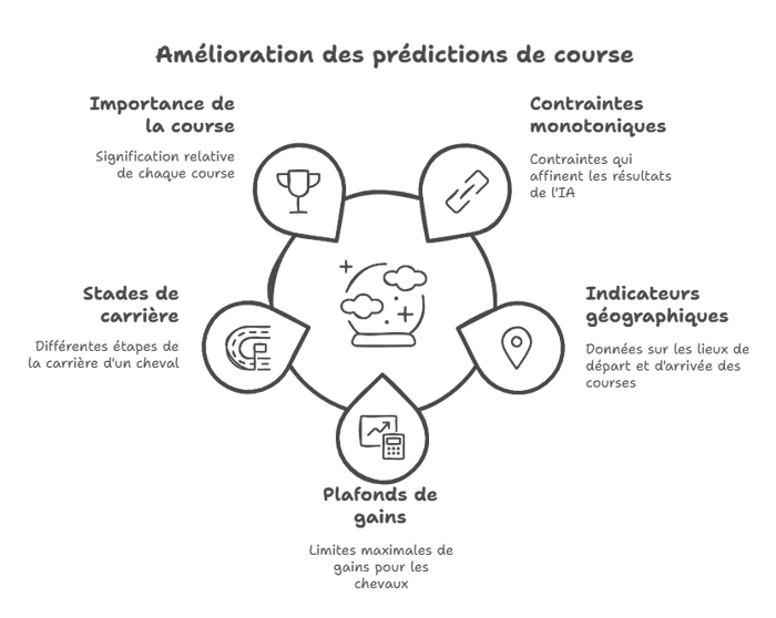 Ces derniers jours, nous avons déployé des efforts considérables pour faire encore progresser nos modèles d’IA. L’ajout de contraintes monotoniques et la prise en compte d’indicateurs plus précis nous permettent désormais de cerner avec finesse les véritables enjeux de chaque course. Un cheval qui traverse la France, par exemple, du Calvados jusqu’à Cagnes-sur-Mer, n’entre généralement pas en piste sans raison. Nos algorithmes le comprennent et intègrent ces données géographiques dans leurs analyses.